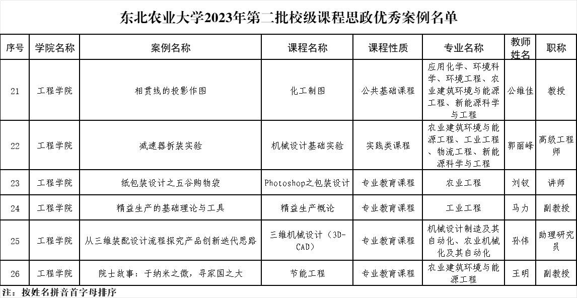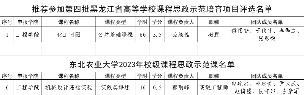 近日,学院推荐、教务处复审、专家评审等环节,学校确定2023年第二批校级24门课程思政示范课校级56个课程思政优秀案例及推荐参加省级项目评选的名单其中,我院1门课程被推选参加第四批黑龙江省高等学校课程思政示范培育项目评选1门课程入选校级课程思政示范课学院推荐6个课程思政优秀案例全部入选校级项目,具体如下