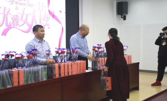 活动开始前,学院党政领导亲自为每位女职工献上鲜花。学院党委书记黄步海,副院长、工会主席臧宏分别发表热情洋溢的讲话,代表学院向女职工致以节日的问候和诚挚的祝福,感谢女职工的奉献与付出,并勉励女职工继续以“巾帼不让须眉”的劲头,撑起学院高质量发展的“半边天”!学院工会还为每位女教职工精心准备了节日礼品盒,祝愿她们节日快乐、心想事成、青春永驻、健康幸福。