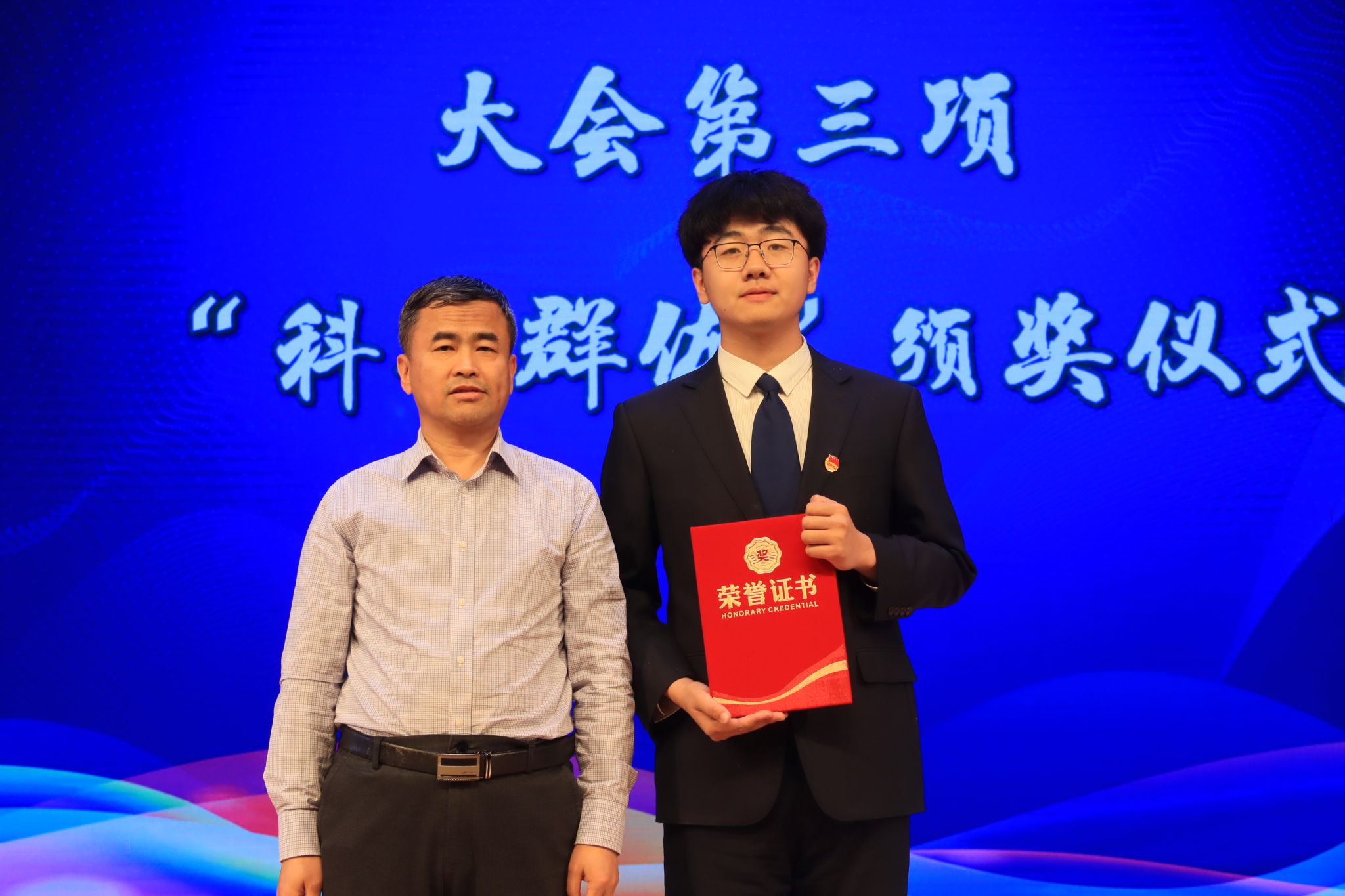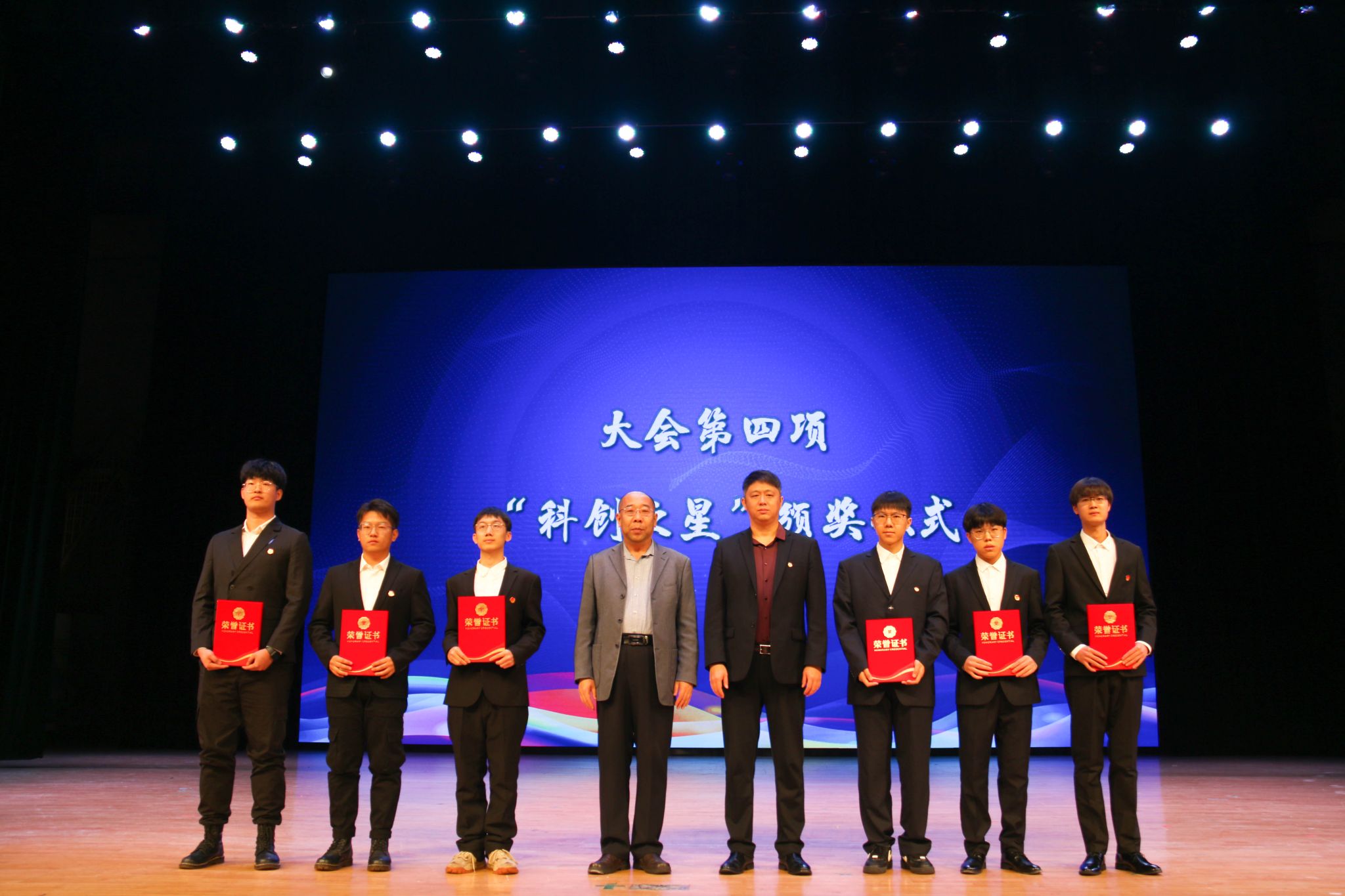 王金峰宣读了2022-2023年度2007so太阳集团“科创群体”及“科创之星”获奖名单。臧宏为“科创群体”获得者测控研究室代表颁奖;李卡、黄步海为“科创之星”获得者颁奖。获奖代表杨彦晖分享科创经验并号召全体学生成为科技创新路上的“追光者”。