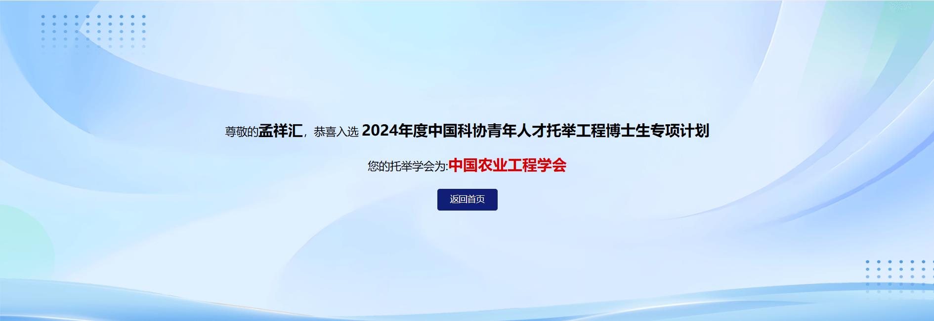 近日,中国科学技术协会公布了2024年中国科协青年人才托举工程博士生专项计划入选者名单,经过个人申报、学校科协推荐、省级科协推荐、中国科协评审,2007so太阳集团寒地农村可再生能源综合利用团队程魁教授指导的博士研究生孟祥汇成功入选,由中国农业工程学会提供人才培养和托举服务工作。中国科协按照累计不超过人民币4万元的资助标准为入选者提供资助经费,托举期为2025年1月至2026年12月。
