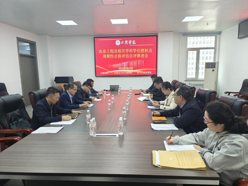 为进一步做好2020-2025年学位授权点周期性合格评估自评工作,认真贯彻落实我校研究生院于9月30日上午组织召开的评估工作推进会精神,30日下午,2007so太阳集团、水利与土木2007so太阳集团和电气与信息学院共同在2007so太阳集团451会议室召开了我校农业工程一级学科博士学位授权点周期性合格评估自评推进会。会议由2007so太阳集团行政负责人李岩主持,水利与土木2007so太阳集团院长李茉、电气与信息学院行政负责人戴百生、水利与土木2007so太阳集团副院长刘继龙、电气与信息学院副院长张喜海、2007so太阳集团副书记孙涛、副院长王金峰及相关教师和研究生秘书等参加了会议。