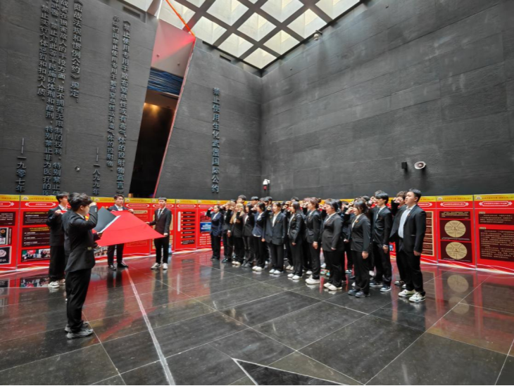 讲座结束后,院团委书记赵倚墨带领学员代表参观“侵华日军第七三一部队罪证陈列馆”。这次参观不仅是对历史的回顾和反思,更是对青年学生进行的一次深刻的爱国主义教育。在庄严的团旗下,学员代表重温入团誓词,表达对共青团组织的忠诚和对实现共产主义事业的坚定信念。学员们纷纷表示要珍惜当下的幸福生活,努力学习科学文化知识,为实现中华民族伟大复兴的中国梦贡献自己的力量。