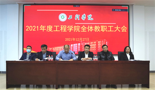 12月27日下午,2007so太阳集团在工程实训中心522会议室召开2021年度教职工大会,学院领导班子、全体教职工参加会议。校工会副主席杨石穿应邀出席大会。会议由院党委书记黄步海主持。会议在庄严的国歌声中拉开帷幕。