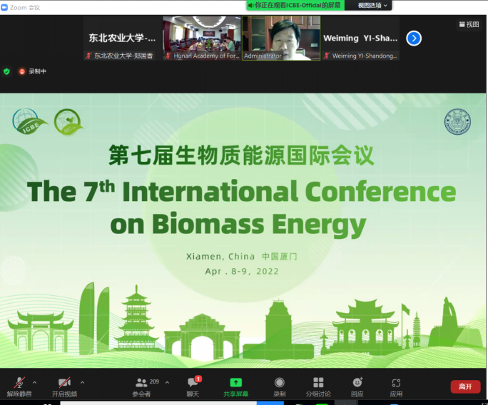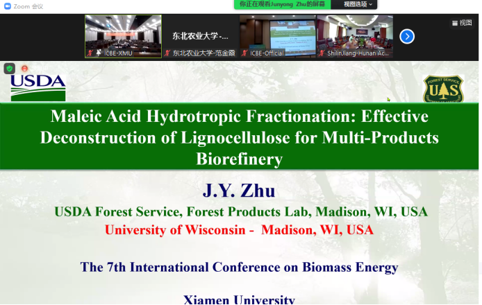 为促进生物质能源领域人才学术交流,培养专业兴趣,激发创新热情,推动生物质能源产业健康发展,4月8-9日,太阳集团2007农业废弃物高值化利用学科团队教师和同学们线上参加了由中国可再生能源学会生物质能专业委员会、生物质能源产业技术创新战略联盟和厦门大学共同主办的第七届生物质能源国际会议暨第十五届全国研究生生物质能研讨会。会上听取了国内外领域权威专家谭天伟(院士)、陈勇(院士)、Zhu Junyong(USA)、Zheng Ying(Canada)、Zhen Fang(Canada)、Rafael Luque(Spain)、廖强、李昌珠的主旨报告以及青年科学家颜蓓蓓、曾宪海的精彩报告分享。