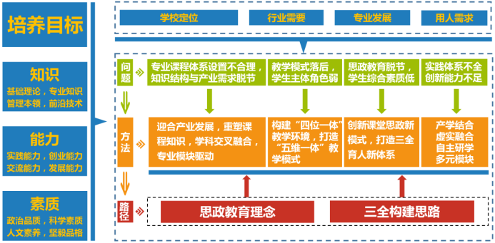 该成果立足于国家乡村振兴、农业现代化、高等教育发展等战略决策部署,通过研究与实践,提出“一根本,一导向,一主体,二适应,五转变”培养模式。秉承“新工科”建设目标与理念,优化课程体系,构建“互联网+”教学环境,建立“五维一体”教学模式,创新“政—校—行—企—农”“六维协同”培养机制,制定“评价—诊断—反馈—改进”动态教育保障体系与制度,构建“虚实融合、多元模块”思政创新实践教学平台,实现了思政教育与农业机械化及其自动化专业“三全”融合模式。