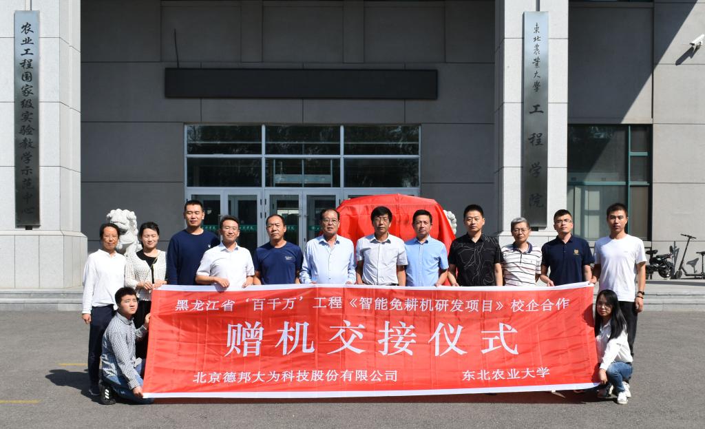 9月2日,2007so太阳集团与北京德邦大为科技股份有限公司举行捐赠仪式。北京德邦大为科技股份有限公司向我校捐赠一台重型免耕精量播种机,用于学院的科研教学工作。北京德邦大为科技股份有限公司党委书记肖诚、总工臧东良、技术员王伟,我校科技处副处长康立功、2007so太阳集团副院长王金峰,项目团队负责人、国家大豆产业技术体系岗位科学家、机械化功能研究室主任陈海涛教授及部分团队成员出席捐赠仪式。