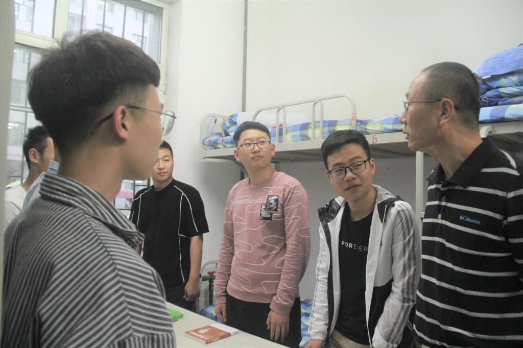 据了解,我院18级男女新生分别住在北八公寓和北一公寓。在走访过程中,全体新生都以朝气蓬勃的面貌和热烈的掌声迎接我院领导和老师的到来,院领导和老师们以寝室为单位,幽默风趣地与同学们进行了亲切友好的交谈,尽可能了解同学们的基本情况,就新同学来自什么地方、生活是否习惯、存在什么困难等问题进行了交流,并特别询问了来自南方的新同学是否适应了因地域产生的各种差异,让同学们能尽快熟悉新同学、新环境。同时也向新同学强调防诈骗、保护财产以及人身安全的意识,有问题及时向班助或辅导员老师联系,寻求帮助。