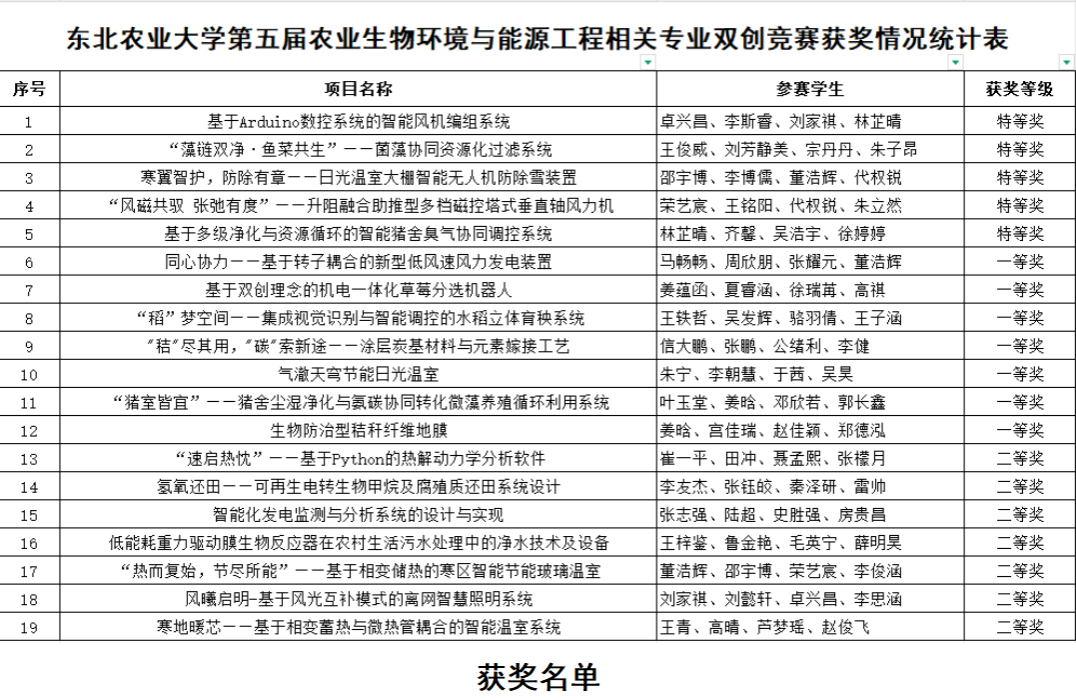 据悉,全国大学生乡村振兴暨农业建筑环境与能源工程相关专业双创大赛是由教育部高等学校农业工程类专业教学指导委员会指导,中国农业工程学会、中国农业大学、全国农业科技创业创新联盟、全国乡村振兴高校联盟共同主办的学科竞赛,赛事每年举办一届。目前全国几乎所有农林类高校都积极参与其中。我校自2011年参加首届全国农业建筑环境与能源工程相关专业双创大赛以来,至今已成功组织参加了十一届比赛,并不断创造佳绩。十年间共申报参赛作品48件,斩获特等奖4项,一等奖13项、二等14项,三等奖17项,优秀组织奖10次,在农林院校中名列前茅。