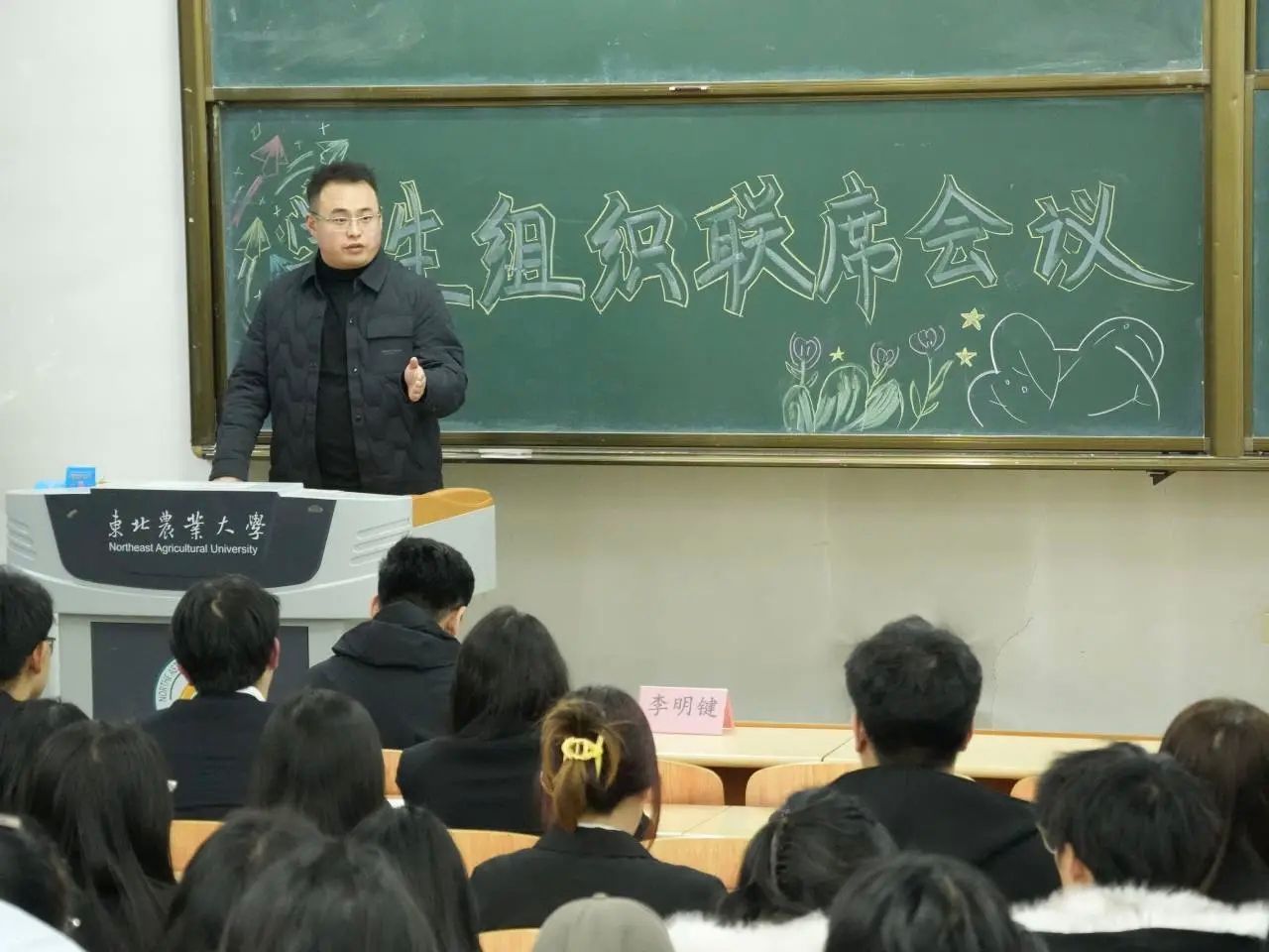 李明键老师则重点围绕"一心双环"育人机制进行深入解读与工作部署。他强调,要以团委为核心,牢牢把握团学组织的政治方向与育人核心;同时,充分发挥学生会(内环)作为联系广大同学的主渠道,以及学院其他学生组织(外环)作为校园文化活跃载体的补充。通过强化核心引领、联动内外环力,推动各学生组织从"单兵作战""协同共进"转变,着力构建资源共享、优势互补、风险共防的工作新格局。