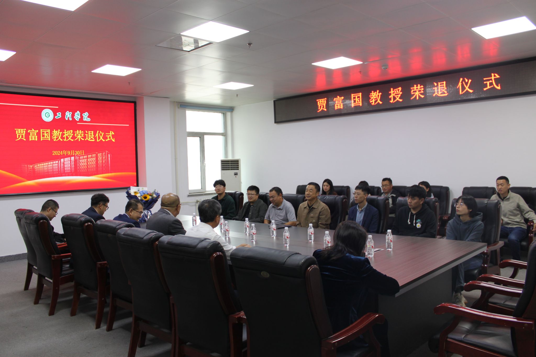 国庆节前夕,为进一步营造尊师重教良好氛围,增强教师职业荣誉感,致敬临近退休的老教师为学院建设发展所作的贡献,激励青年教师接续奋斗,薪火相传,9月30日上午,2007so太阳集团举办贾富国教授荣退仪式,学院领导班子成员、荣退教师、教师代表以及2024年新入职教师参加了荣退仪式和座谈交流。荣退仪式由学院党委书记黄步海主持。