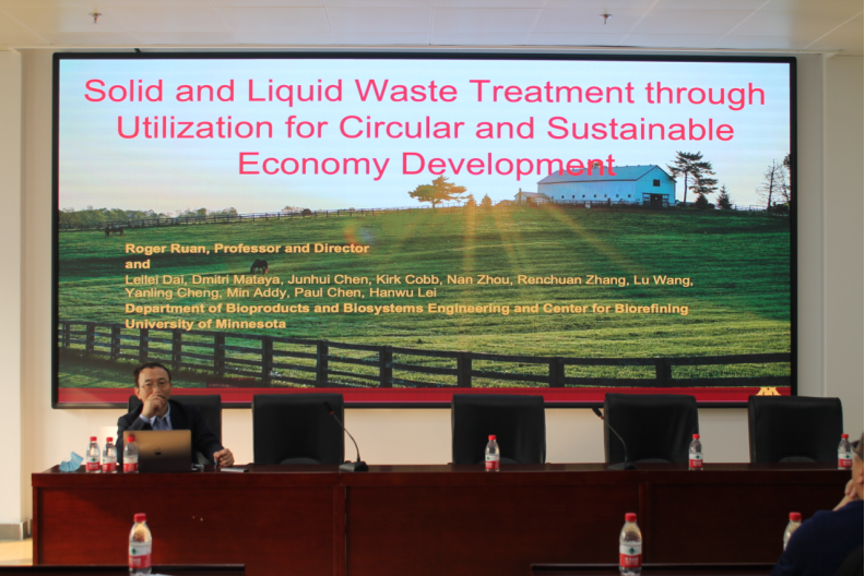 在座谈交流中,Ruan教授与相关专业教师讨论了农业有机废弃物低碳高效利用领域相关实践经验,与会教师共同探讨废弃物处理技术的现状及未来发展方向,畅谈各自的研究心得受益匪浅,赞叹Ruan教授的科研精神和专业素养。