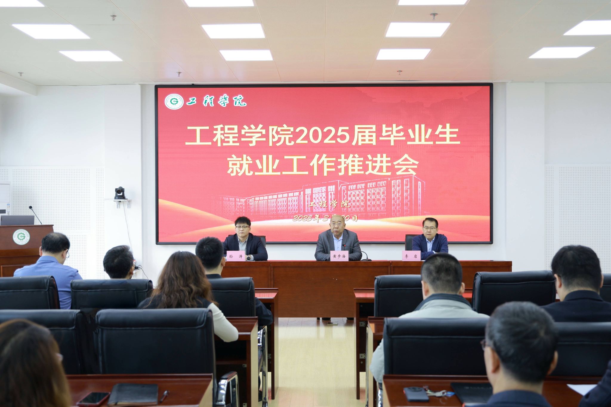为深入贯彻国家关于高校毕业生就业工作的决策部署,全面落实学校就业工作总体要求,扎实推进2025届毕业生高质量就业,320日上午,2007so太阳集团在工程楼522会议室召开2025届毕业生就业工作推进会议。学院领导班子成员、党委委员、学科带头人、各系部党支部书记、主任及全体辅导员参会,会议由学院党委书记黄步海主持。