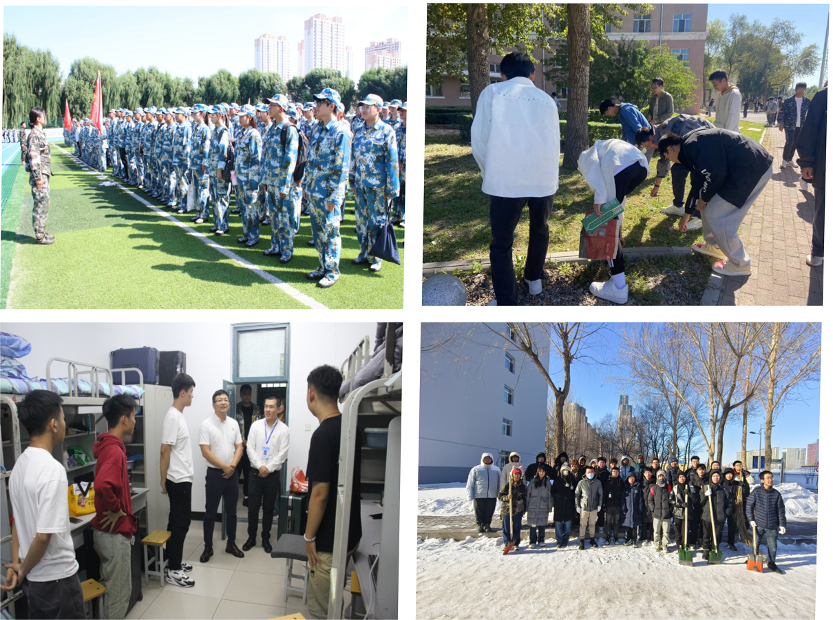 紧扣院士精神中勤于思践的实践理念,培养学生崇尚劳动、热爱劳动的高尚品质。深入开展新生军训活动,培育新生的国防观念和国家安全意识,增强新生集体主义观念、组织纪律观念和团队协作精神,培养艰苦奋斗的作风,磨练意志,强健体魄,帮助他们以健康的生活习惯和良好的精神状态投入大学生活。新生辅导员每天进行宿舍卫生检查活动,引导新生养成良好的卫生习惯,打造干净、舒适的宿舍环境。开展美化校园,劳动最美为主题的劳动教育实践活动,引导新生继续弘扬劳动精神,在劳动中提升综合素质,争做德、智、体、美、劳全面发展的新时代大学生。