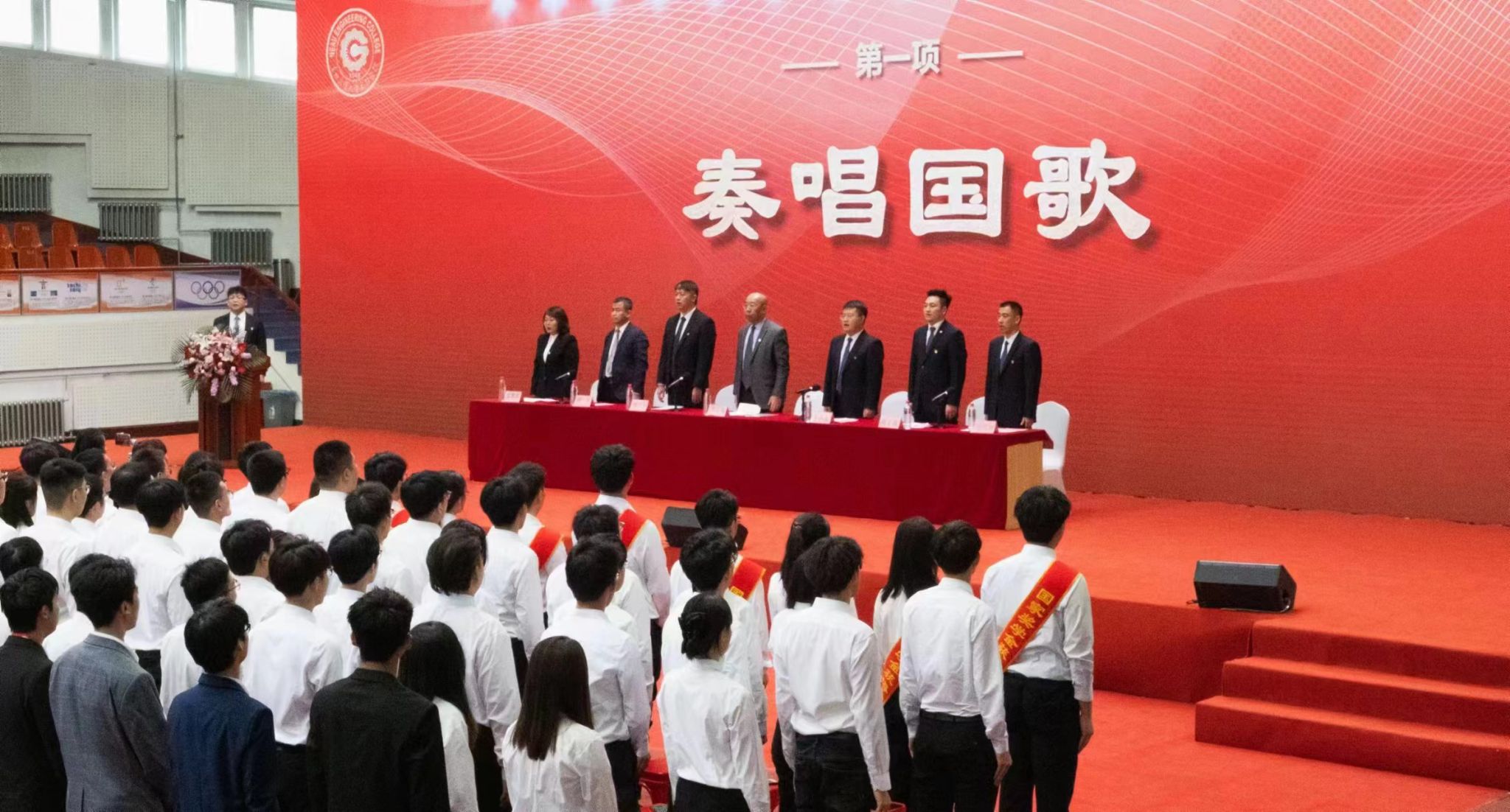 表彰大会在庄严的国歌声中拉开序幕。