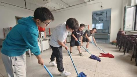 毕业生打扫实验室