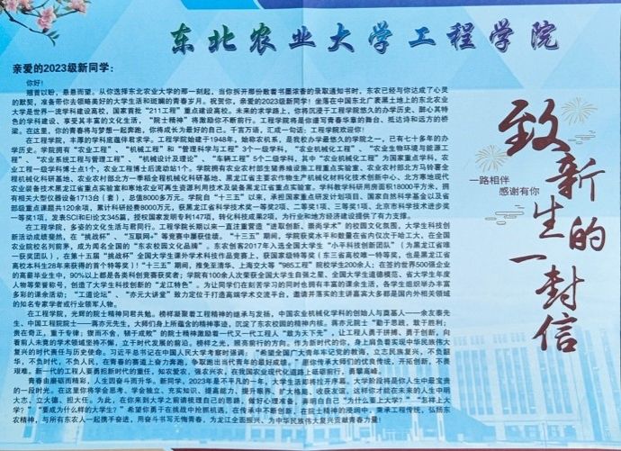 天南地北,相逢不易。很高兴我们在2007so太阳集团相遇。在这个崭新的起点上,祝愿每一位2023级2007so太阳集团新生都能成为知农、爱农、学农、兴农的东农骄子。希望全体2023级工程人能斗志昂扬,勇往直前,带着学院的关怀,共创学院美好的明天。祝福各位新生能够在东农的怀抱中,找到人生的归属和无限可能!