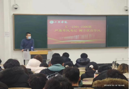 诚信教育,严肃纪律,加强考风考纪完善以管促学。2023级新生辅导员组织大一学生签订考试诚信承诺书,讲解《太阳集团2007学生手册》,依照手册对学生进行管理监督、考核提升学生纪律意识;组织开展“树立文明典范 争做诚信先锋”考试诚信教育大会,旨在倡导诚信考风,塑造良好学风,打造一个公平、公正、和谐的育人环境和考试氛围,同时培养学生的诚信意识,引导他们树立尊重他人、诚实守信的优良品质。此外,辅导员老师坚持以管理促学风,深入课堂查课,及时与任课老师及班主任联系掌握学生动态,主要学生干部每日汇报课堂出勤情况,形成任课教师、辅导员、学生骨干齐抓共管的育人局面。