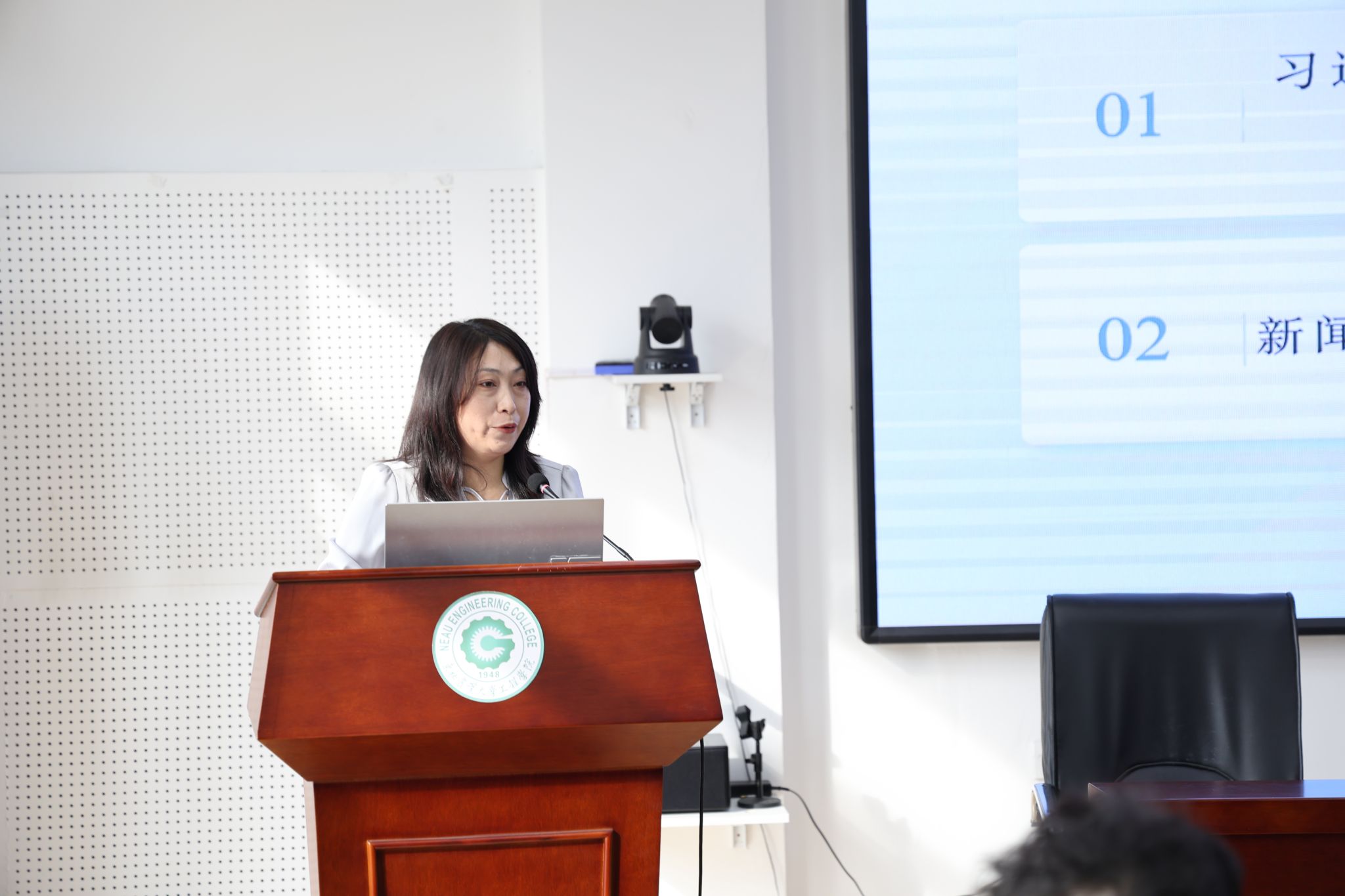 董新英以《从践行“四力”谈如何让新闻宣传有温度》为题,结合高校宣传工作实际,围绕新闻选题策划、标题拟定、稿件撰写、内容打磨等方面进行了系统讲解。她结合典型案例,深入阐释了践行脚力、眼力、脑力、笔力对提升新闻宣传质量的重要作用,并就高校日常工作和育人活动新闻写作中的规范要求与注意事项进行了重点辅导。她指出,新闻宣传工作既要准确传递信息,也要体现思想深度和人文温度,切实讲好学院育人故事,展现师生良好精神风貌。