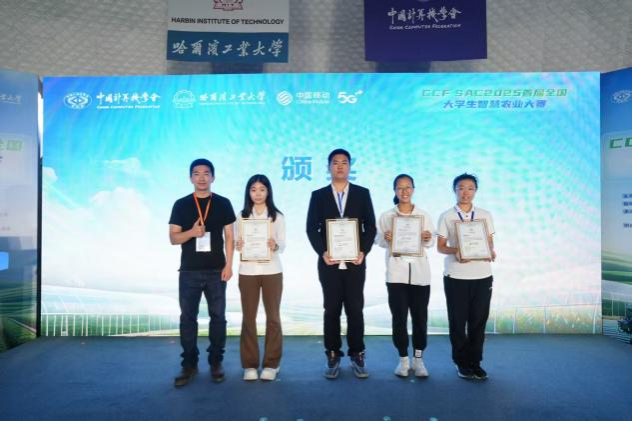 总决赛获奖团队“双株智选剔苗装置”团队代表受邀参加9月13日于吉林省长春市举办的颁奖仪式,以及2025 CCF数字农业分会年会暨第三届CCF数字农业大会、“智农育人、数创未来”新农科教育论坛等一系列学术活动。中国工程院院士赵春江、中国科学院院士王立军等500余位专家学者与行业代表出席了此次大会,聚焦数字技术与现代农业深度融合,大会共设置了14场专题论坛,包括“低空智农:无人机精准监测与智能作业创新论坛”“AI驱动的菌物学研究论坛”“智慧粮食论坛”等多个主题,从不同角度探讨数字农业的前沿技术和发展趋势。